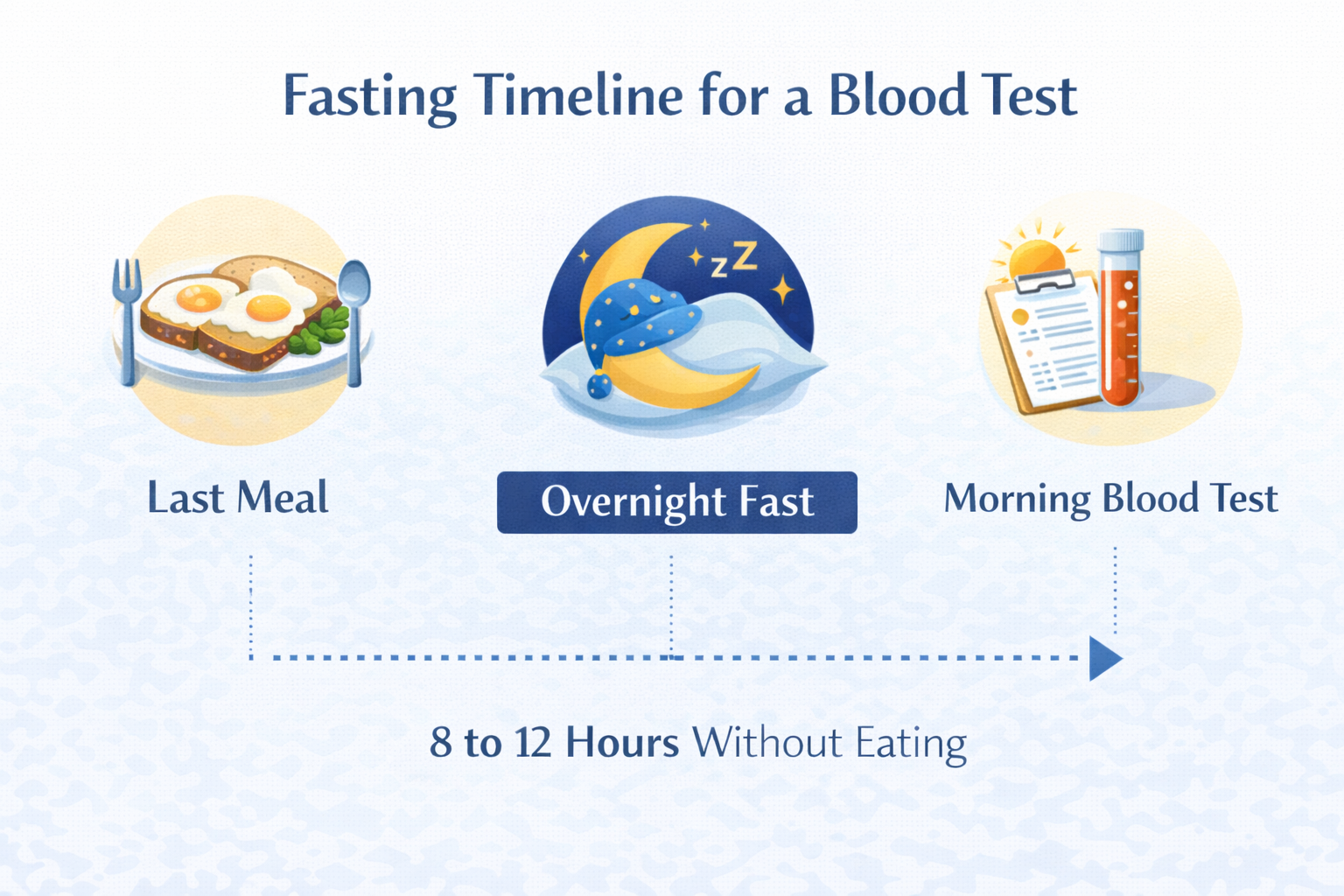 Timing plays a key role in avoiding these foods and drinks. The best time to take a fasting blood test is early in the morning after an overnight fast of 8 to 12 hours. This makes it easier to avoid eating and reduces the risk of accidentally consuming restricted items. Morning testing also helps maintain consistency in test values.
